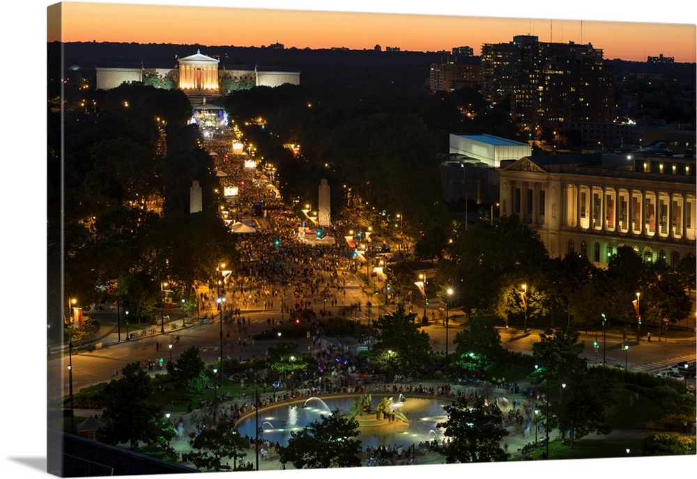 <p>Large crowd gathering for Fourth of July Celebration, Philadelphia Museum of Art, Ben Franklin Parkway, Logan Circle, Philadelphia, Pennsylvania, USA</p>
