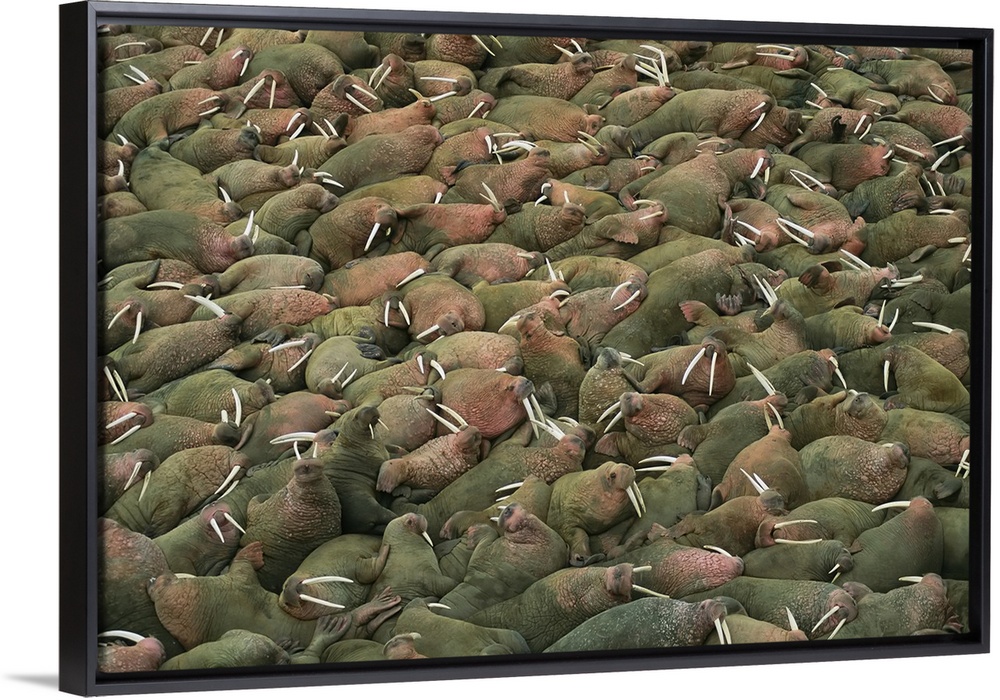 <p>Large group of walruses (odobenus rosmarus) resting close together in Togiak national wildlife refuge. Alaska, united states of America.</p>