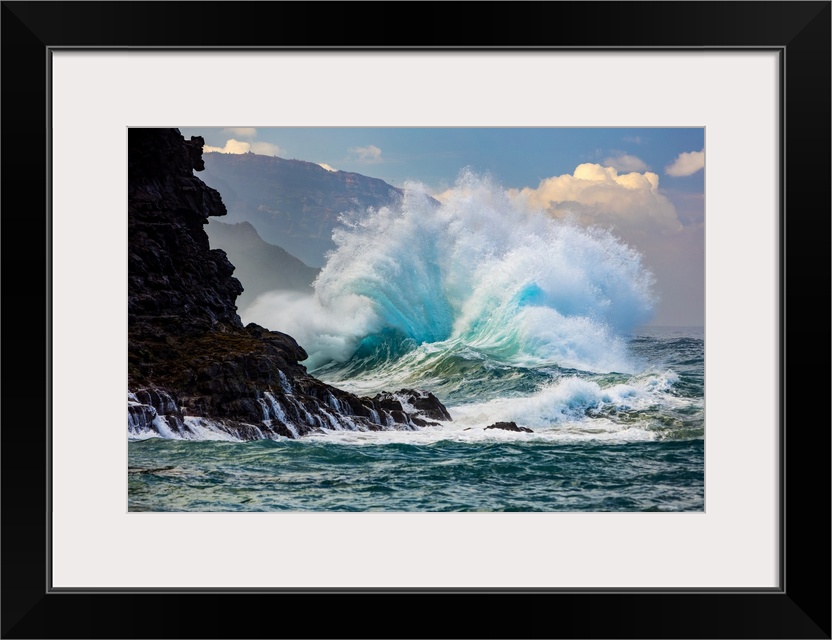 <p>Large waves on the Na Pali coast of the Hawaiian Islands; Kauai, Hawaii, United States of America.</p>