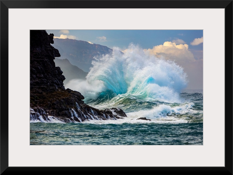 <p>Large waves on the Na Pali coast of the Hawaiian Islands; Kauai, Hawaii, United States of America.</p>