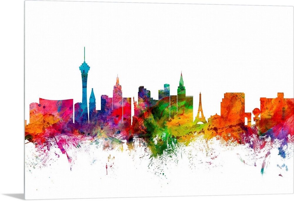 <p>Watercolor artwork of the Las Vegas skyline against a white background.</p>