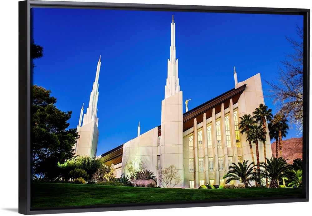 <p>The Las Vegas Nevada Temple was dedicated in 1985 and 1989 by Gordon B. Hinckley. The statue of the angel Moroni on the temple faces away from the city of Las Vegas as a symbolic gesture to welcome the second coming of Jesus Christ. In the Celestial Room, the tall windows cast rainbows onto the surrounding walls when natural light shines through.</p>