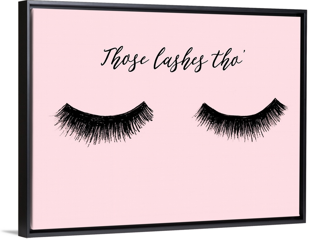 <p>"Those Lashes Tho" with eyelashes in black on a pink background.</p>