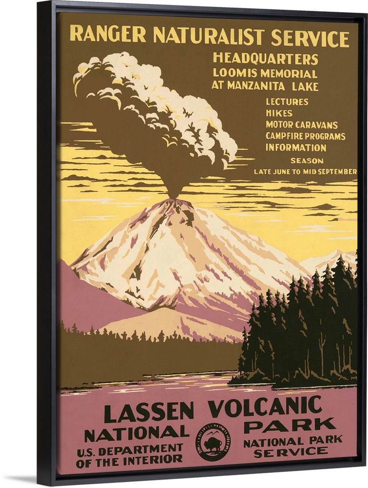 <p>Lassen Volcanic National Park, Ranger Naturalist Service. Poster shows Lassen Peak errupting. Library of Congress, Prints and Photographs Division, WPA Poster Collection.</p>