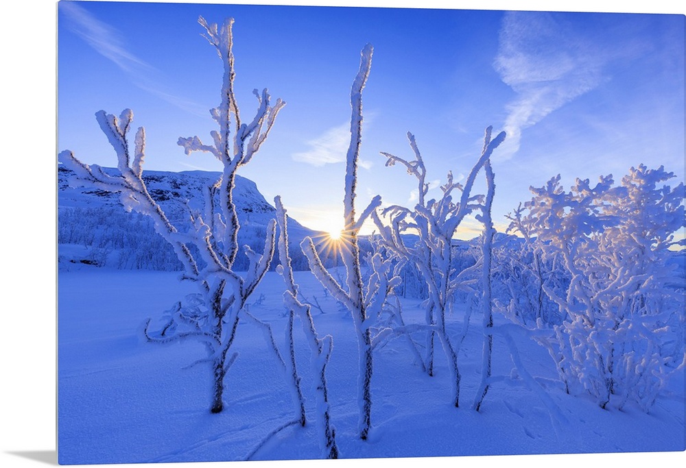 <p>Last sun on frost plants. Riskgransen, Norbottens Ian, Lapland, Sweden,Europe</p>