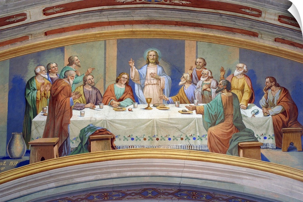 <p>The Last Supper fresco painting on the ceiling of the church.</p>