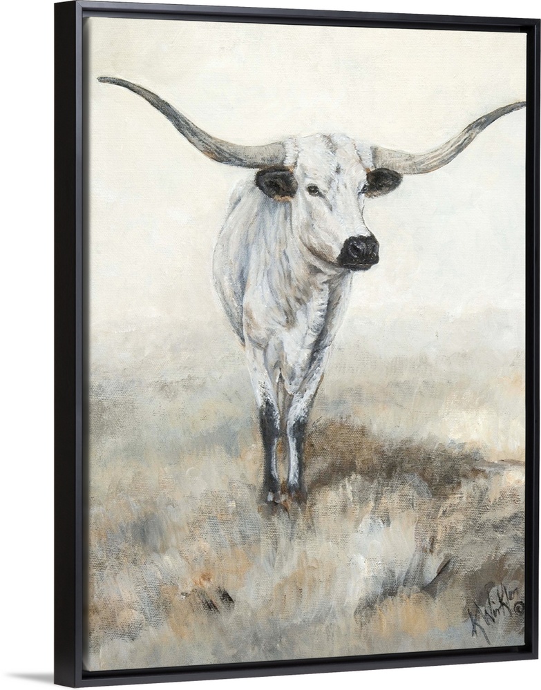 Art Contemporary Art Wildlife Grey Wall Art Painting Wildlife Cow Longhorn Kathy Winkler