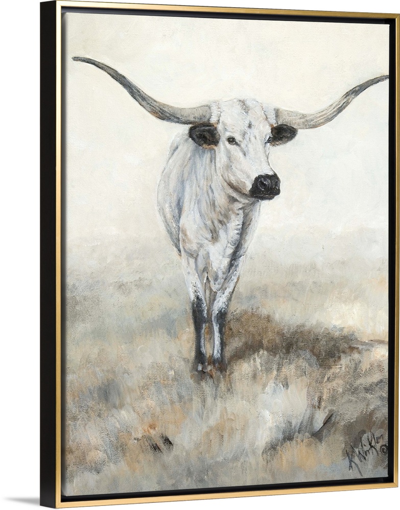Art Contemporary Art Wildlife Grey Wall Art Painting Wildlife Cow Longhorn Kathy Winkler