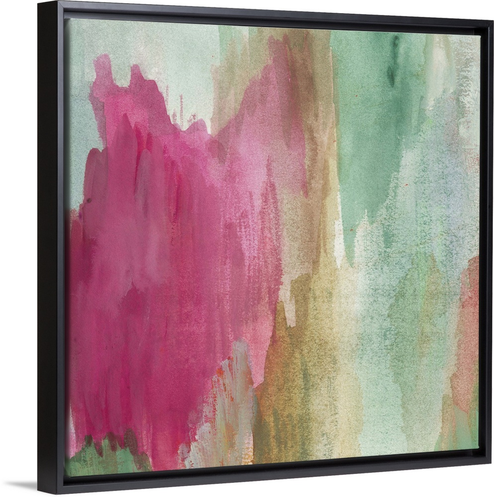 <p>Colorful contemporary abstract painting using pink and green.</p>