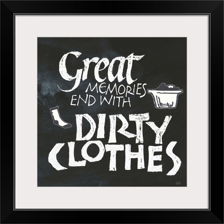 <p>"Great Memories End With Dirty Clothes" on a chalkboard backdrop.</p>