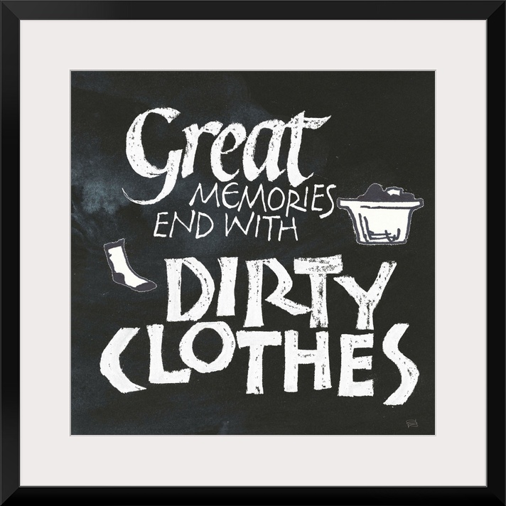 <p>"Great Memories End With Dirty Clothes" on a chalkboard backdrop.</p>