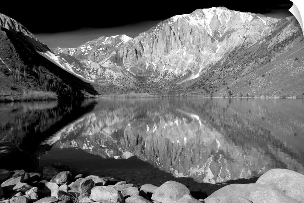 <p>Black and white landscape photograph of Laurel Mountain peak reflecting into a lake in the foreground.</p>