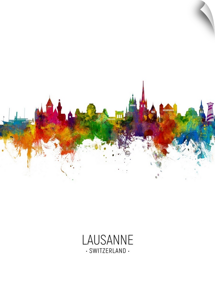 <p>Watercolor art print of the skyline of Lausanne, Switzerland</p>