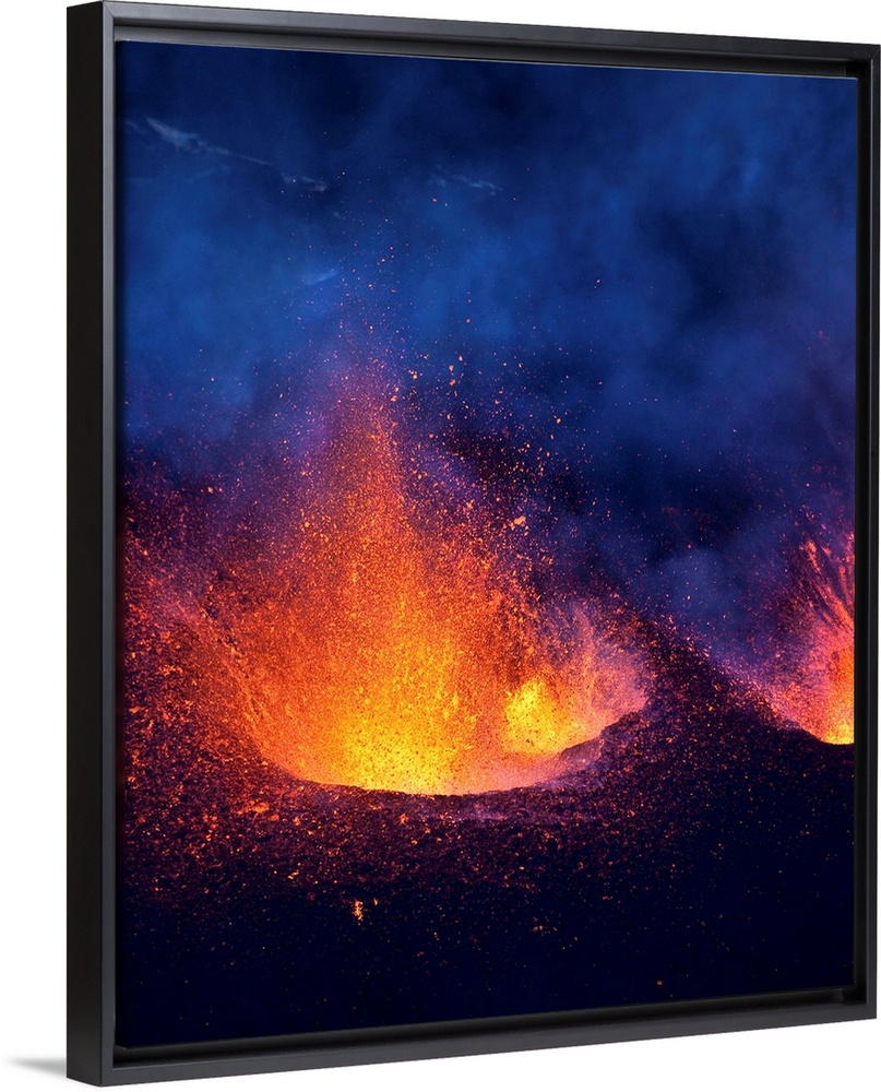 <p>Lava fountains spurting during volcano eruption in Iceland at Fimmvorduhals, a ridge between Eyjafjallajokull glacier, and Myrdalsjokull glacier.</p>