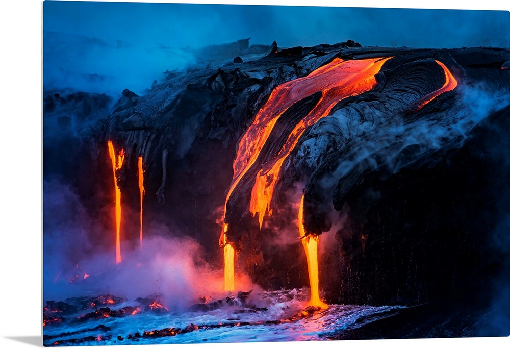 <p>Lava flow entering the ocean at dawn, Hawaii Volcanoes National Park, The Big Island, Hawaii USA</p>