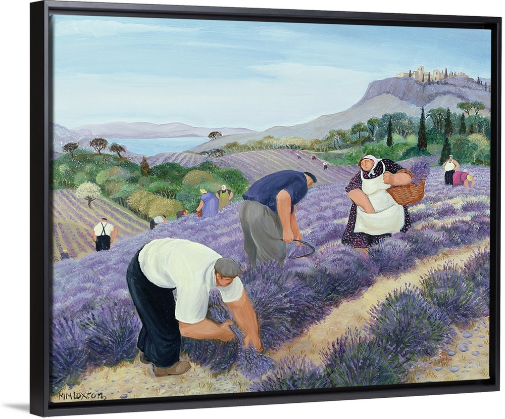 <p>Contemporary painting of people harvesting lavender.</p>