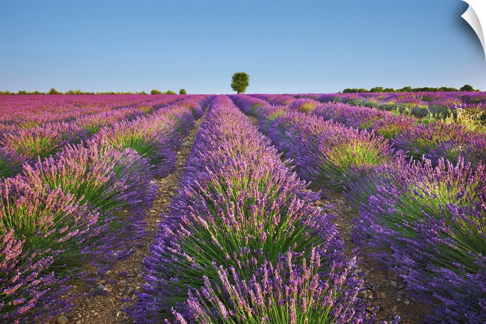 <p>Lavender field. France, Provence-Alpes-Cote d'Azur, Alpes de Haute Provence, Forcalquier, Valensole, Saint Jurs. Provence, Plateau de Valensole (DM). Provence, Western Europe, France.</p>