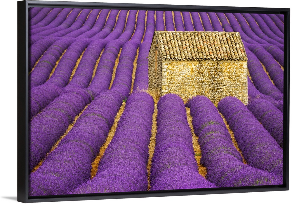 <p>France, Provence, Valensole Plateau. Lavender crop surrounds stone hut. Credit: Jim Nilsen</p>