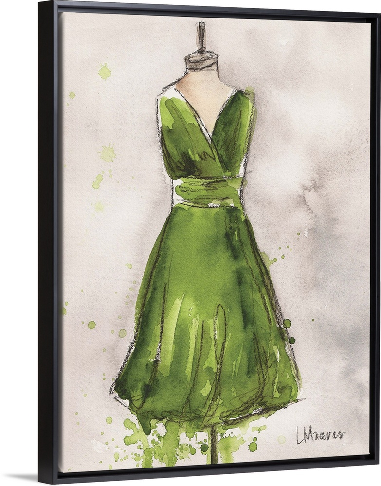 <p>Watercolor painting of a light purple dress on a dress form.</p>