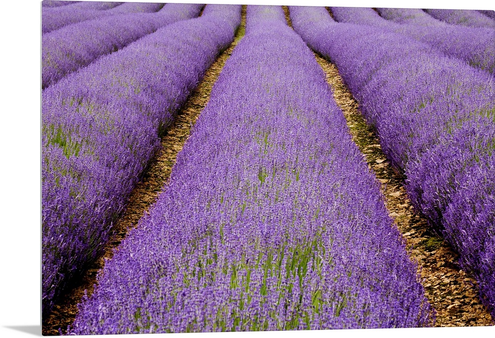 <p>Large photo on canvas of lavender flowers grown in lines in a big field.</p>