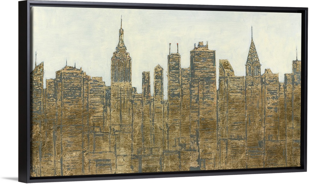 <p>Dusty gold-toned city skyline.</p>