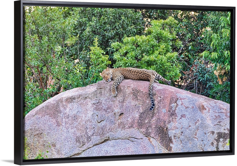<p>A leopard lazily laying on a rock in Tanzania, Africa</p>
