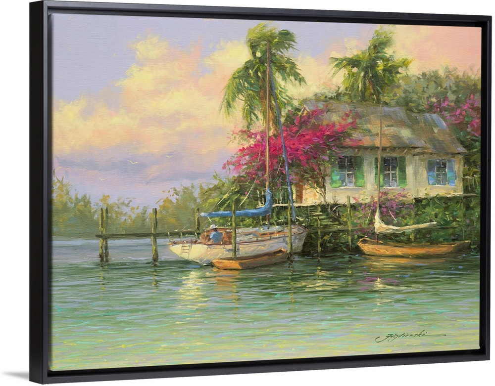 Architecture Cottages Art Contemporary Art Martin Figlinski Landscapes Beaches Seascapes Trees Palm Painting Transportation Boat