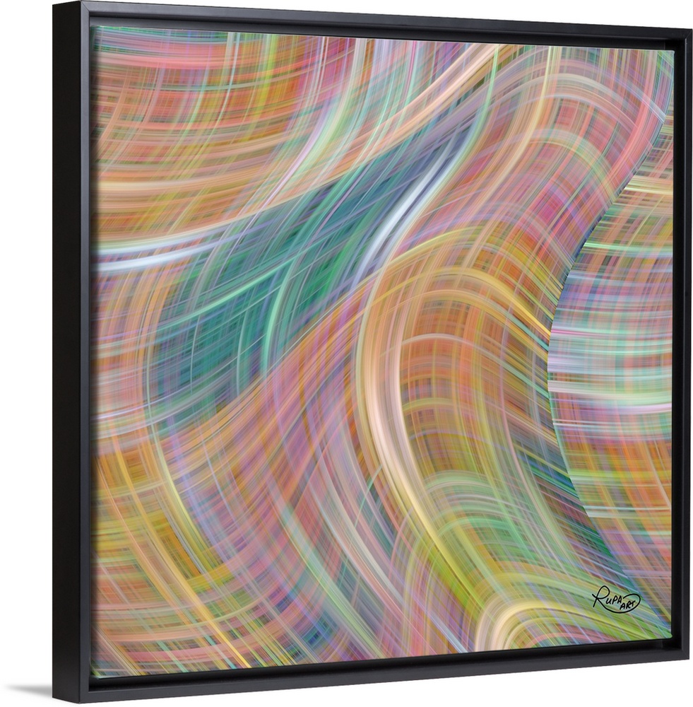 <p>Square abstract of striped swirled shapes in a multi-colored design.</p>