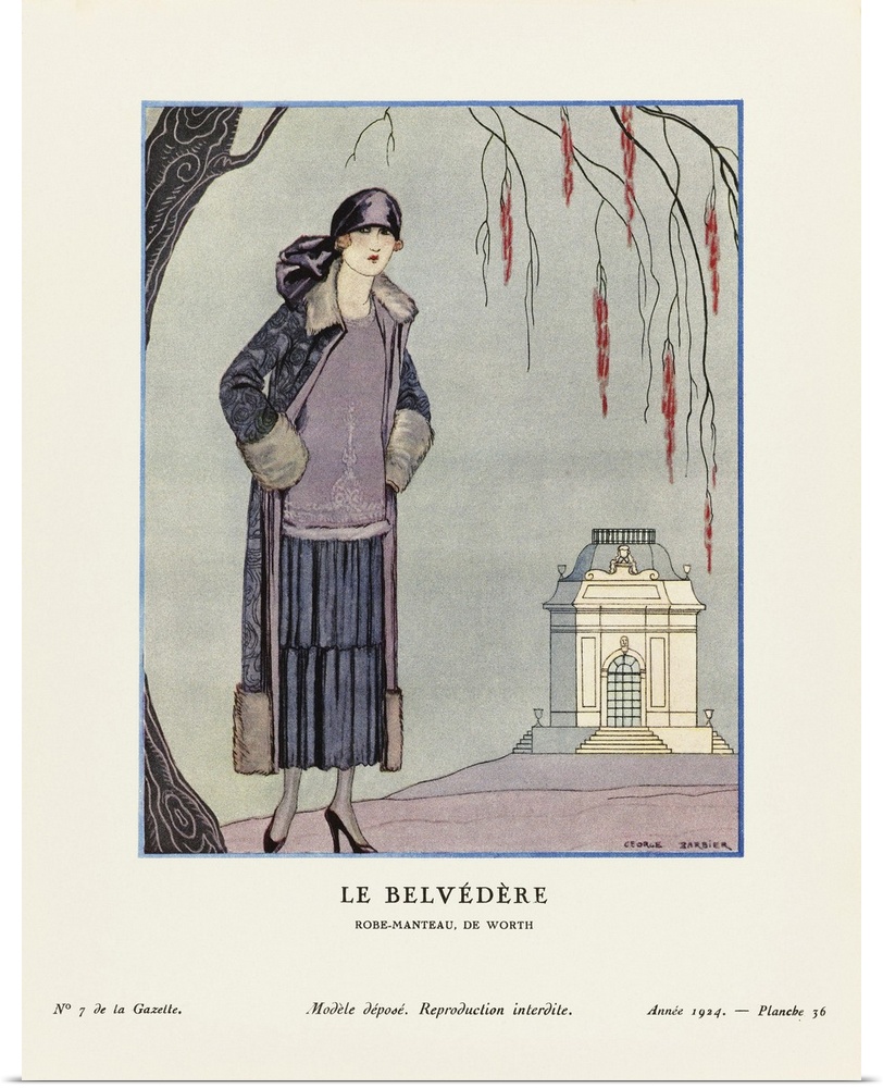 <p>Le Belvedere. The Belvedere. Robe-manteau, de Worth. Dress-coat by Worth. Art-deco fashion illustration by French artist George Barbier, 1882-1932. The work was created for the Gazette du Bon Ton, a Parisian fashion magazine published between 1912-1915 and 1919-1925.</p>