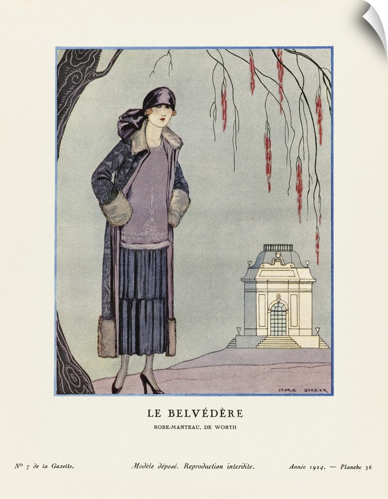 <p>Le Belvedere. The Belvedere. Robe-manteau, de Worth. Dress-coat by Worth. Art-deco fashion illustration by French artist George Barbier, 1882-1932. The work was created for the Gazette du Bon Ton, a Parisian fashion magazine published between 1912-1915 and 1919-1925.</p>