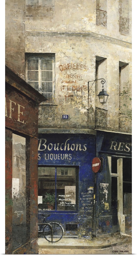 <p>Chiu Tak Hak is a self-taught artist from China who moved to Paris in 1972 and was attracted to the city’s historic shops and cafes. His style combines realism and elements of impressionism and abstractionism. He builds around a realistic central image, and then adds collage and other elements to add depth.</p>