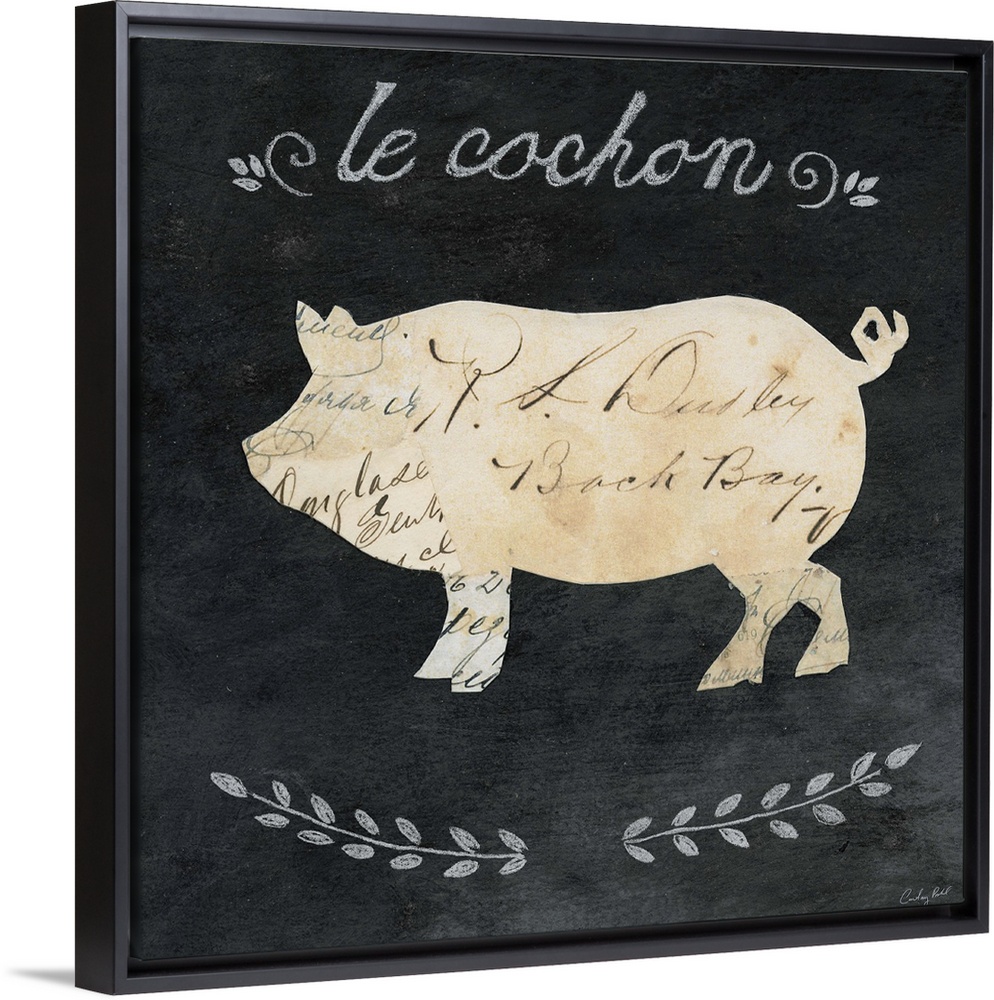 <p>Artwork of a pig cameo against a chalkboard background.</p>