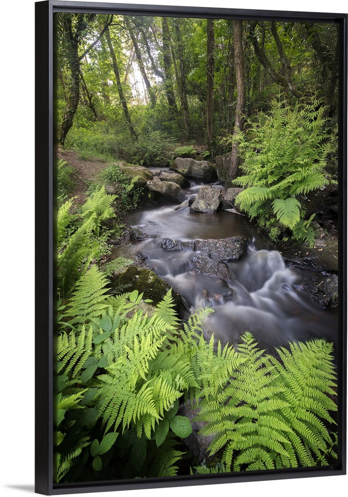<p>A creek in a forest surrounded by ferns.</p>