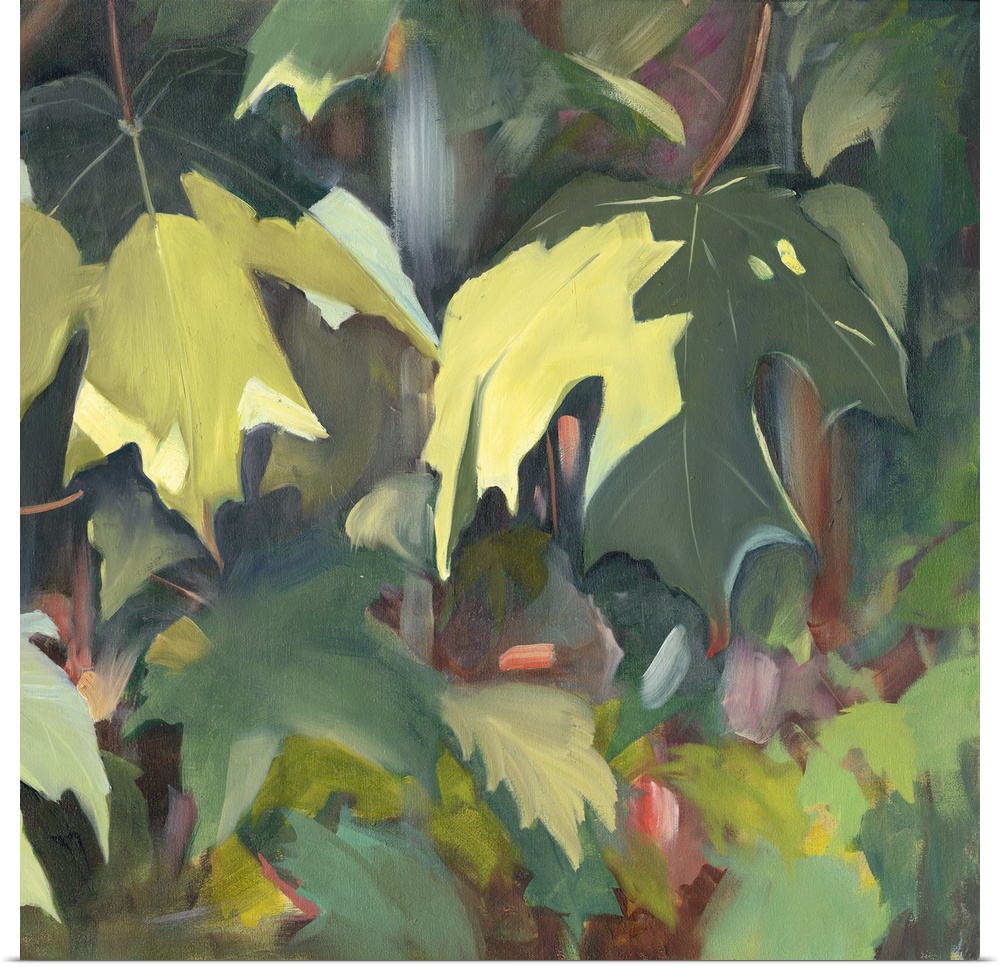 <p>Contemporary artwork of green oak leaves in the shade.</p>