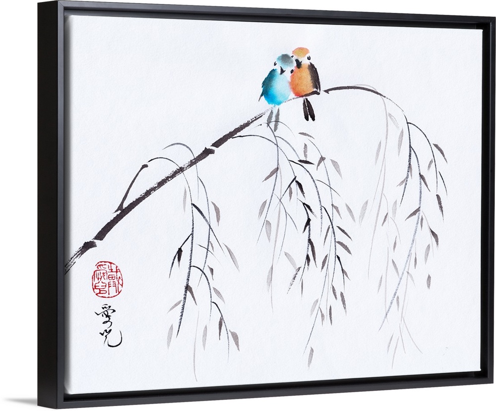 <p>Colorful love birds in Chinese ink and watercolor painting.</p>