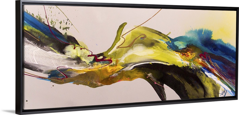 <p>Contemporary abstract painting using vibrant colors converging toward the center of the image in a fluid motion.</p>