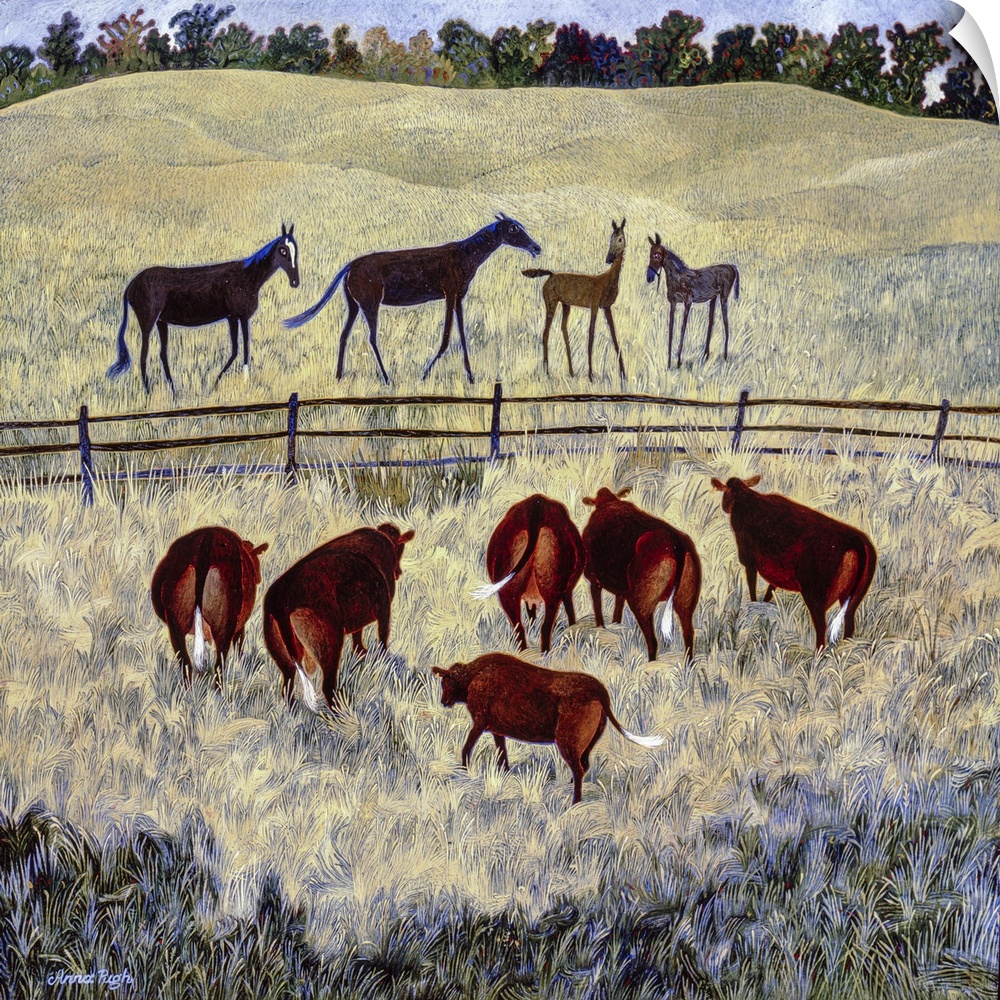 Art Contemporary Art Folk Art Landscapes Painting Anna Pugh Wildlife Cow Horse