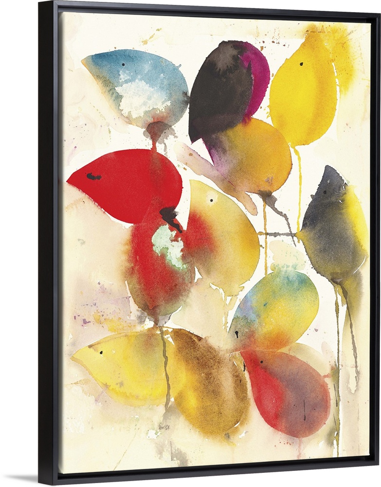 <p>Contemporary abstract watercolor painting of vibrant colored autumn leaves.</p>