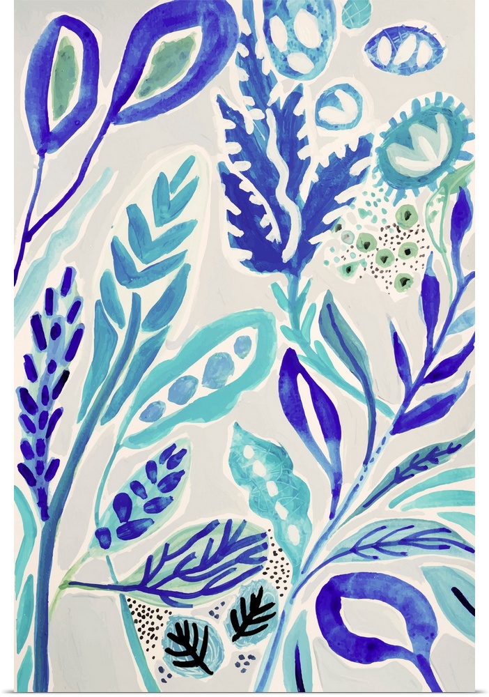 Art Bohemian Blue Wall Art Decorative Art Karen Fields Florals Leaves Painting