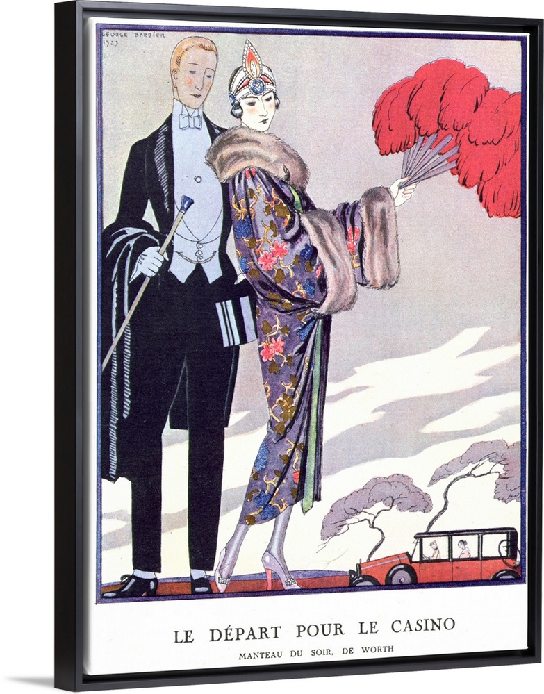 <p>CHT257914 'Leaving for the Casino'. illustration for 'La Gazette du Bon Ton', 1923 (colour litho) by Barbier, Georges (1882-1932); Private Collection; (add.info.: Le Depart pour le casino; manteau du soir de Worth; evening dress designed by the Parisian couture house of Worth;); Archives Charmet; French, out of copyright</p>