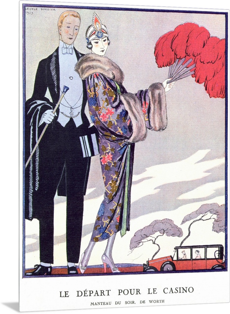 <p>CHT257914 'Leaving for the Casino'. illustration for 'La Gazette du Bon Ton', 1923 (colour litho) by Barbier, Georges (1882-1932); Private Collection; (add.info.: Le Depart pour le casino; manteau du soir de Worth; evening dress designed by the Parisian couture house of Worth;); Archives Charmet; French, out of copyright</p>