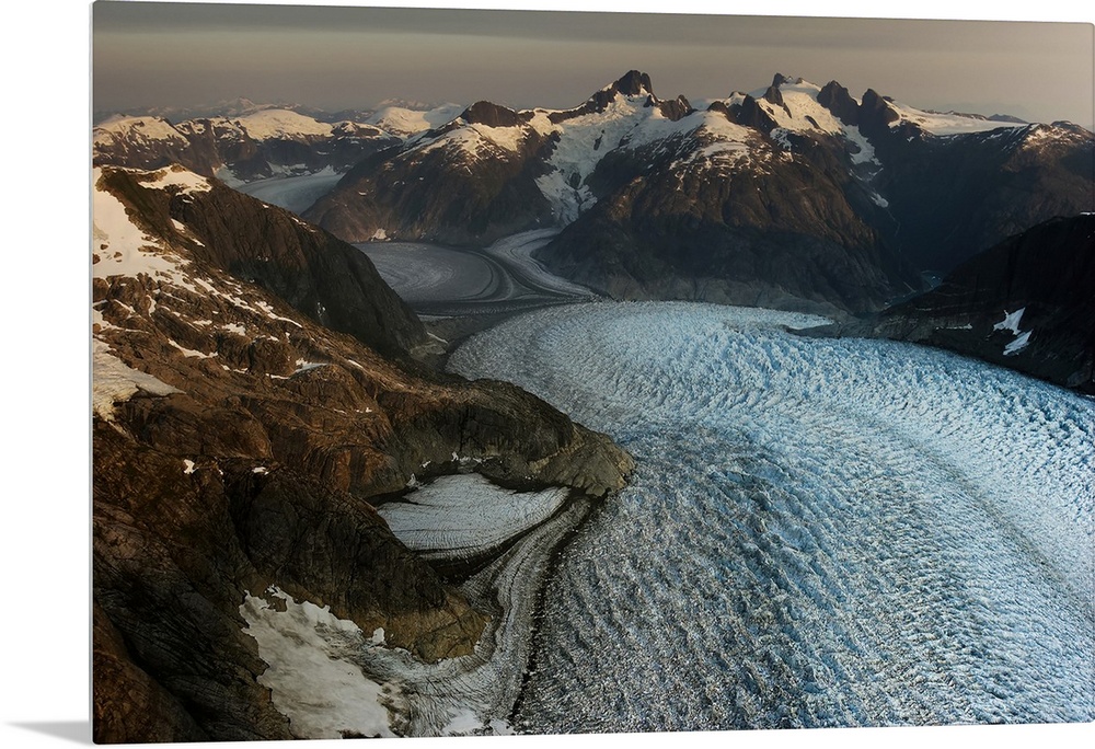 <p>LeConte Glacier in the Stikine Icefield is one of the few remnants of the once-vast ice sheets that covered much of North America during the Pleistocene, or Ice Age. LeConte covers 2, 900 square miles along the crest of the Coastal Mountains and since first charted in 1887, it has retreated almost 2.5 miles but is considered stable; Stikine Icefield, Alaska, United States of America</p>