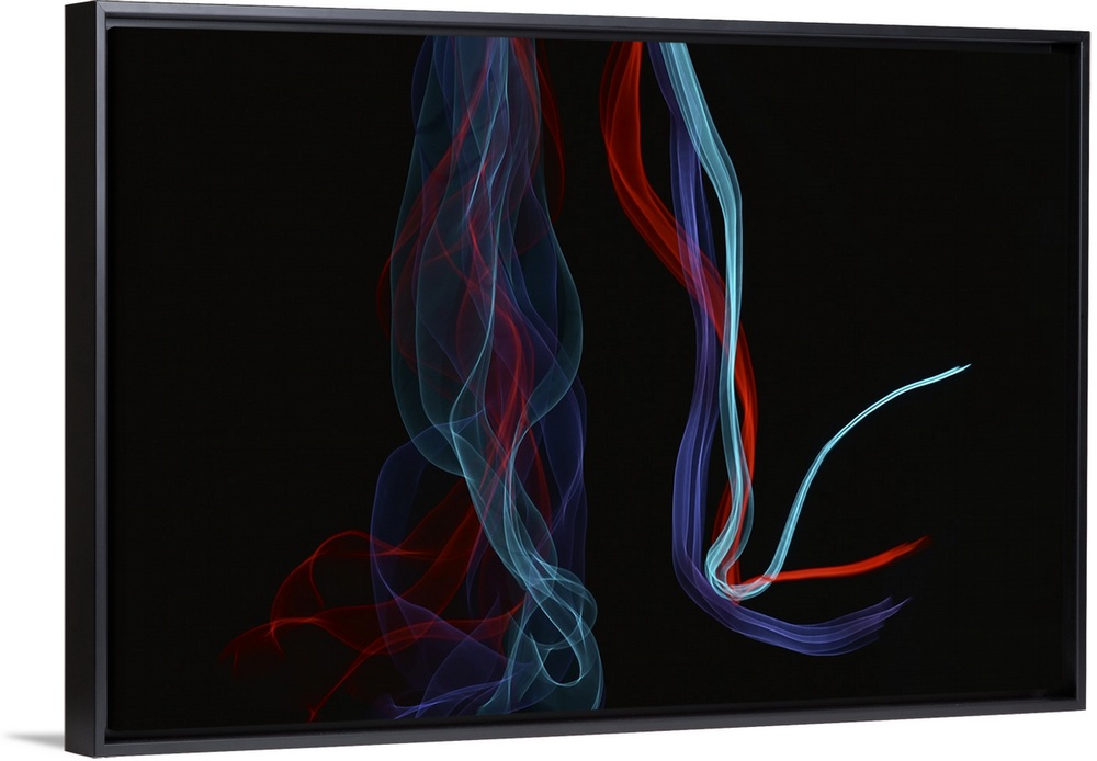 <p>Abstract image created by trailing blue and red lights, resembling wisps of smoke.</p>