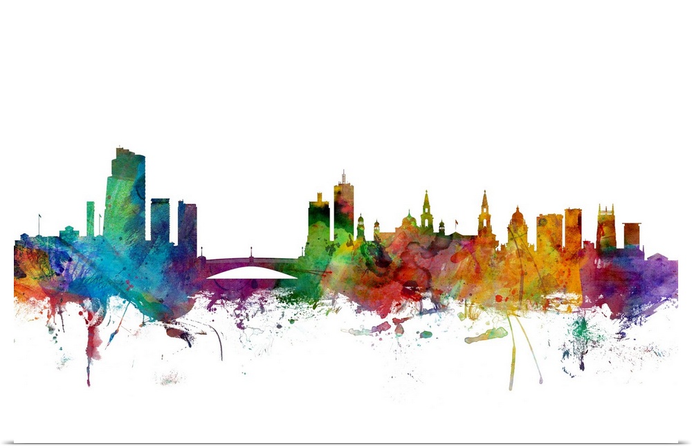 <p>Contemporary piece of artwork of the Leeds skyline made of colorful paint splashes.</p>