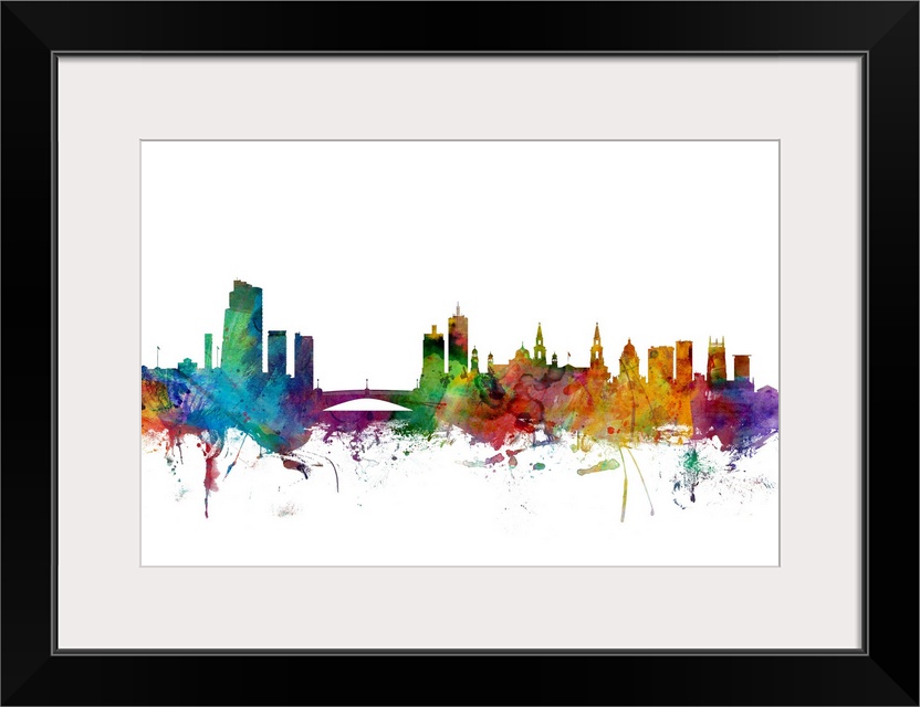 <p>Contemporary piece of artwork of the Leeds skyline made of colorful paint splashes.</p>
