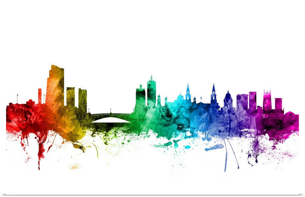 <p>Watercolor art print of the skyline of Leeds, England, United Kingdom.</p>
