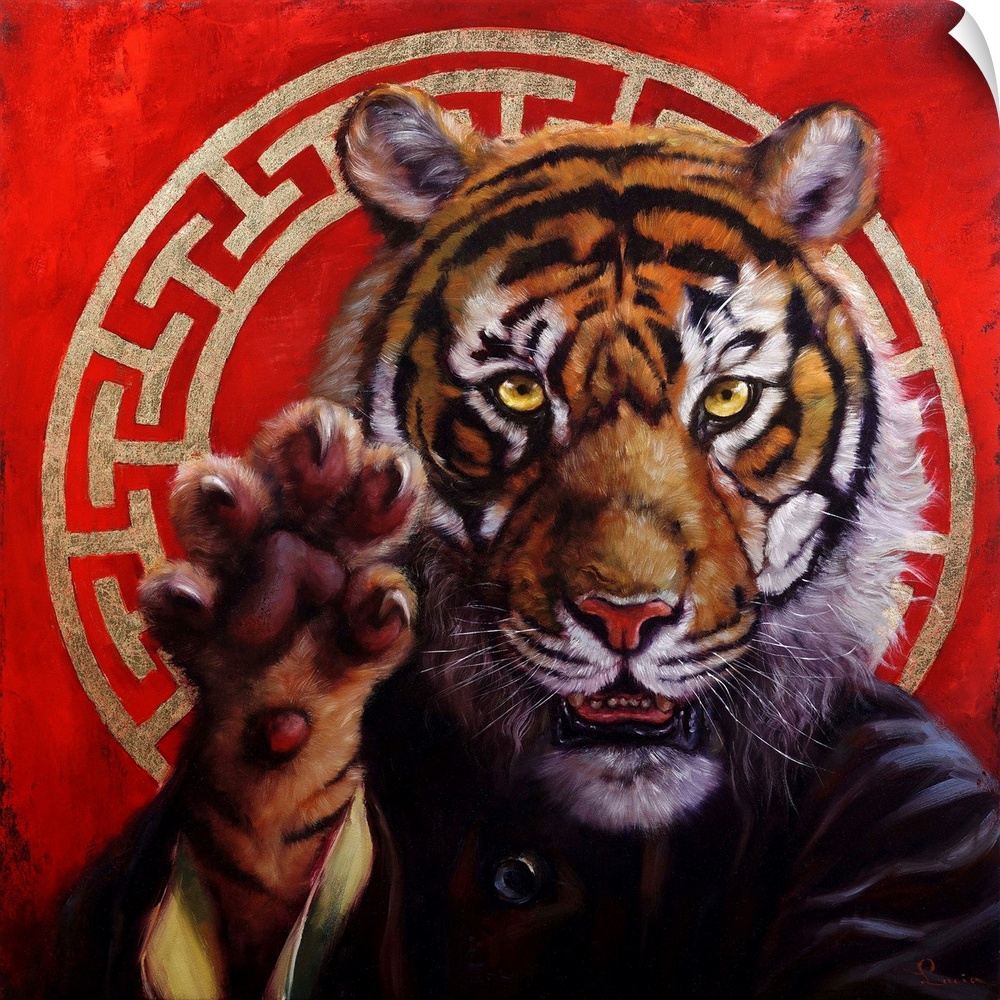 Art Lucia Heffernan Painting Red Wall Art Surrealism Wildlife Tiger