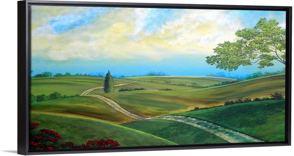 <p>Landscape painting of Leicester's countryside and rolling hills on a beautiful day.</p>