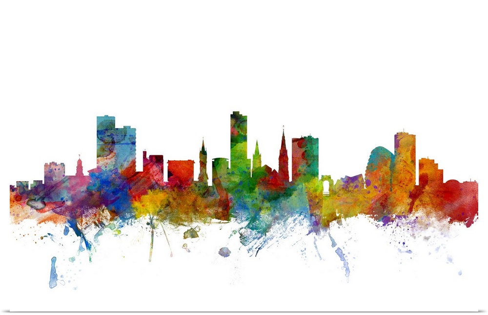 <p>Contemporary piece of artwork of the Leicester skyline made of colorful paint splashes.</p>