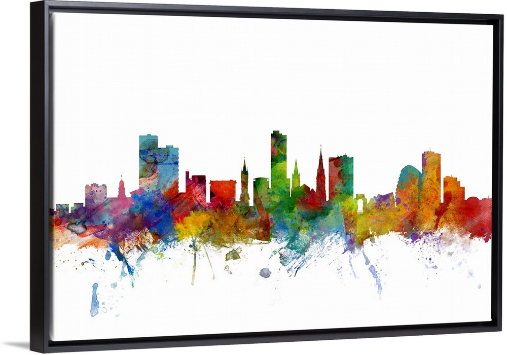 <p>Contemporary piece of artwork of the Leicester skyline made of colorful paint splashes.</p>